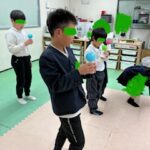 集団活動は「お引越しゲーム」をしました。スタッフが「お引越し」と言った時のみ、スタッフにつかまらないように移動します。「お正月」など違う言葉を言われた時には、その場にいます。みなみんチルドレンは、スタッフの言うことをよく聞いて動いていましたよ😝さすがです💛