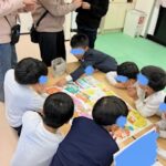 集団活動は【落ちてくる筒をキャッチしよう】をしました。筒がいつ落ちてくるかわからず、ドキドキの子どもたち。筒から目を離さず見ています。落ちてくるとしっかりキャッチしていますよ!!筒をキャッチできた時の笑顔が何とも言えないぐらい、可愛かったです💛