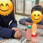 まずはハンガーリレー!ハンガーを紐から紐へ、次の人に渡していきます。どうやったらハンガーを取ることが出来るのか、しっかり考えて出来ましたよ👏