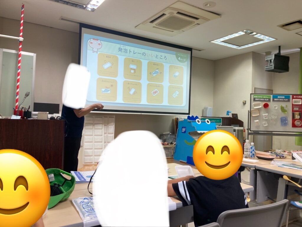 そして、食品トレーを回収とリサイクルを行うことが地球温暖化の対策になること、新しい食品トレーやプラスチックハンガー等に生まれ変わるといった話を、真剣に聞いていましたよ🌍
