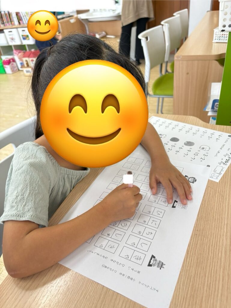 持参したドリルやプリントをするお友達は、1学期に勉強した苦手な所を再度チャレンジして頑張っていますよ!