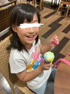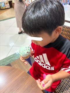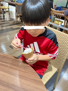 ハキハキと注文して最後にありがとうございましたって言えた子、恥ずかしくてスタッフと一緒に注文していた子もいましたが、無事にアイスが届いてみんな嬉しそうでしたし、美味しそうに食べていました😋