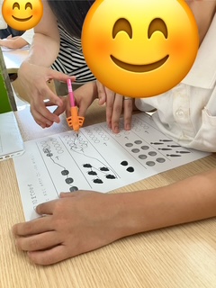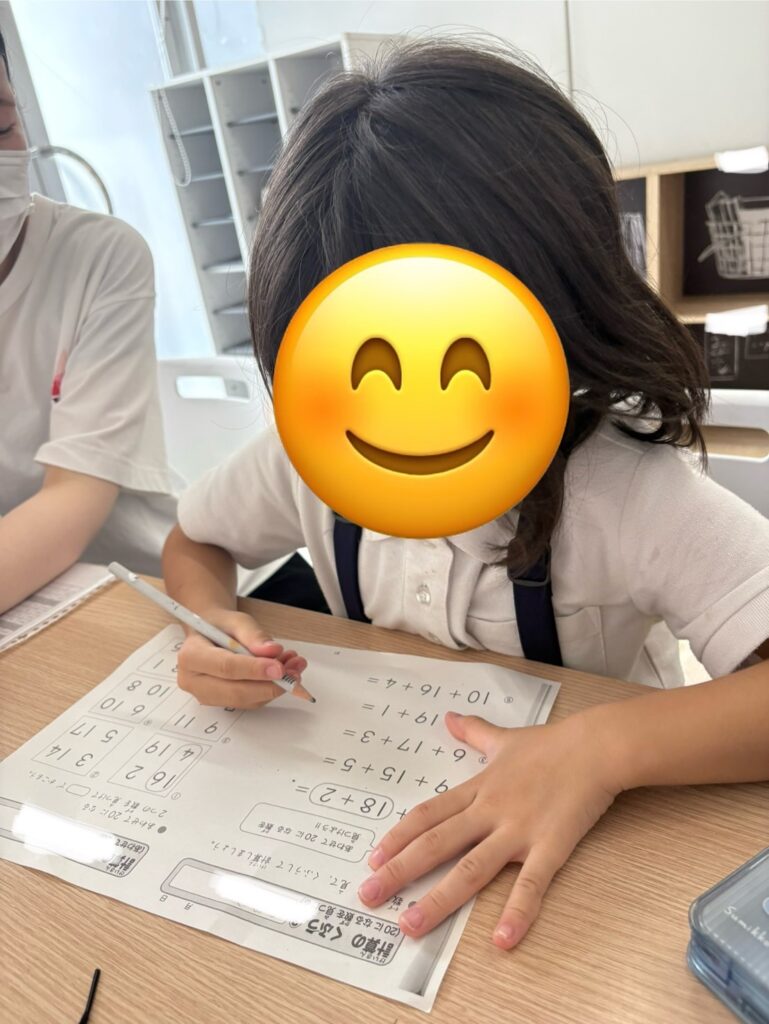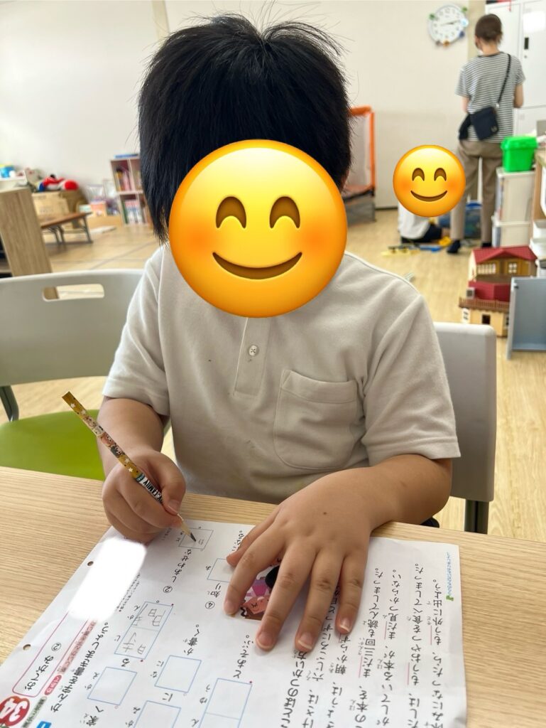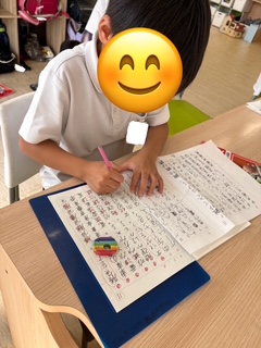 一文字一文字丁寧に書いていく姿やスタッフに「あってるー?」と聞きながら課題に取り組む姿が見られます💪