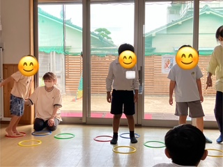 しっかり声を聞いて、自分も声を発しながら、さらに!前後左右の動きに対応するという、脳を活性化させる遊びです!
