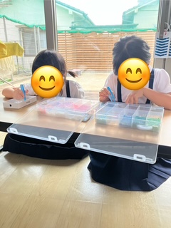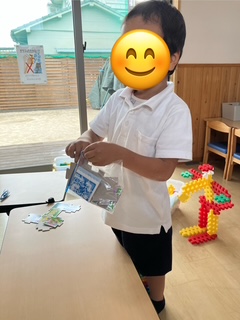 自由遊びでは、マットの上でおままごとをしたり、最近ブームのアイロンビーズも…🥰