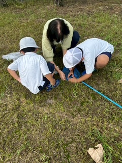思いっきり体を動かして楽しんでいました!雨上がりでカエルを捕まえて観察していましたよ🐸
