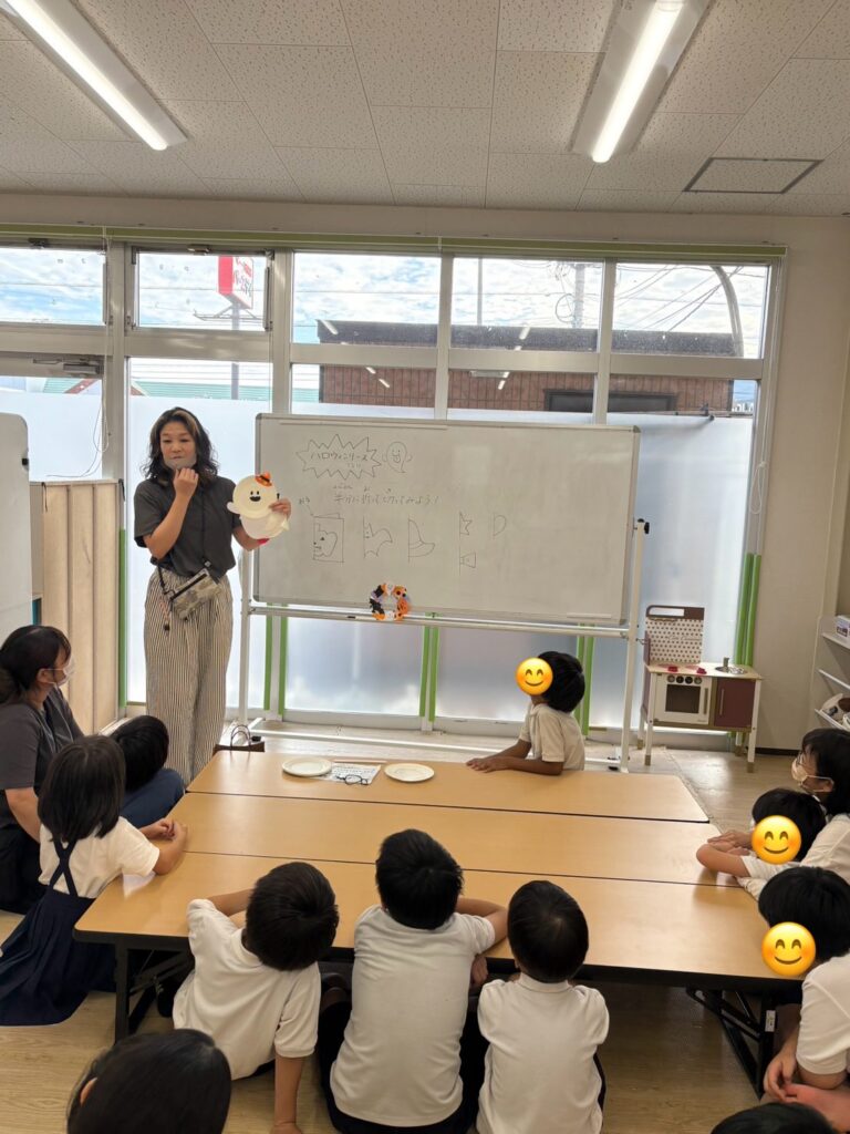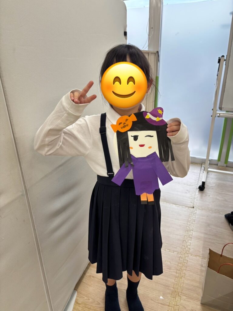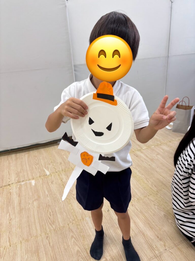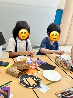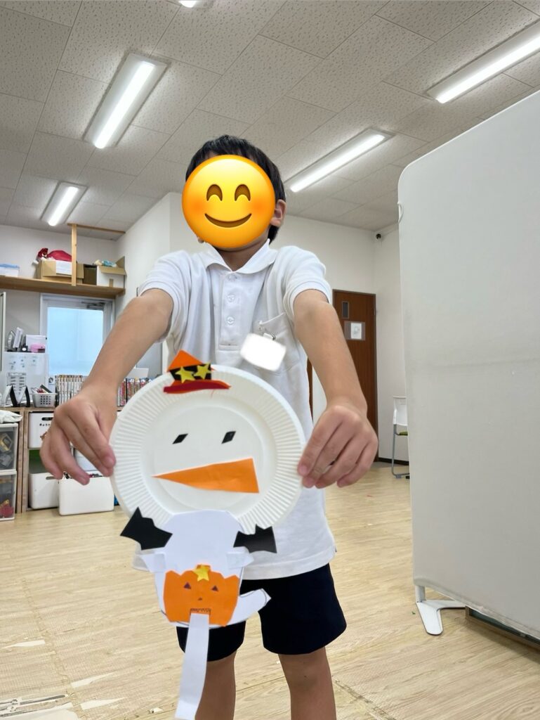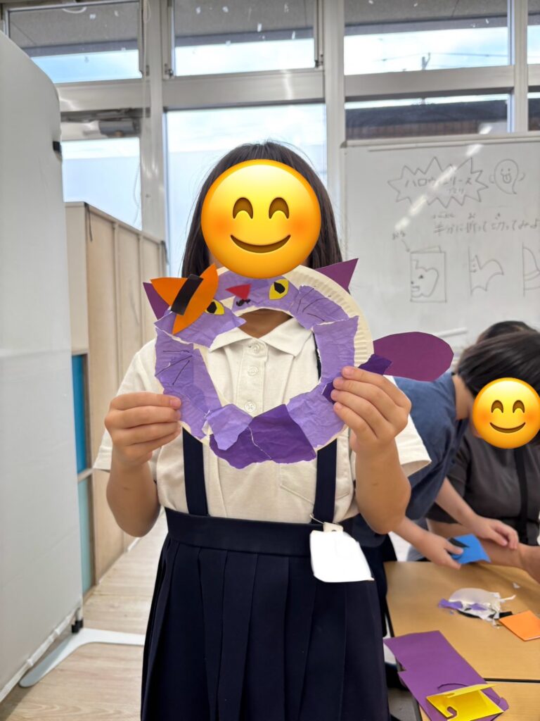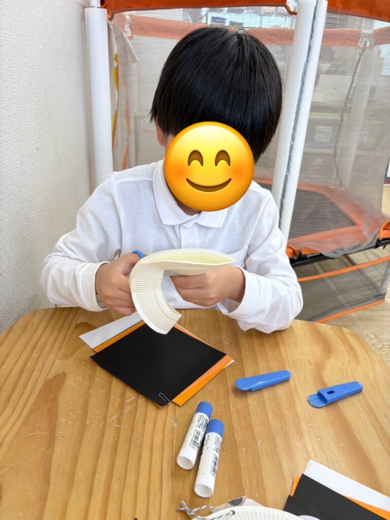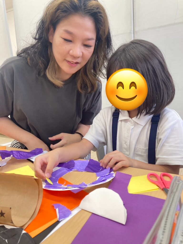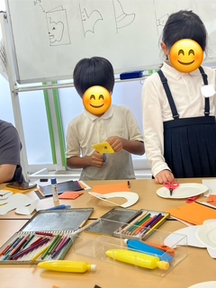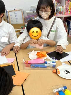 折り紙をちぎって飾り付けをしたり、カボチャやコウモリの切り絵に挑戦している子もいました🦇