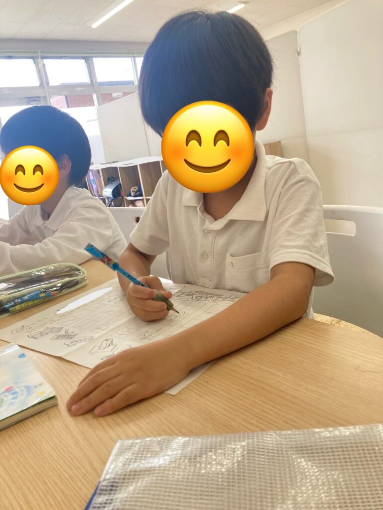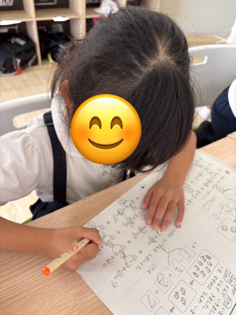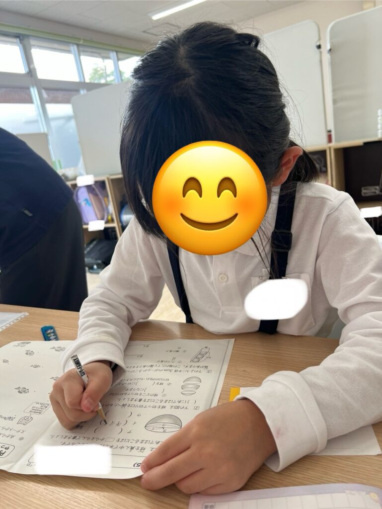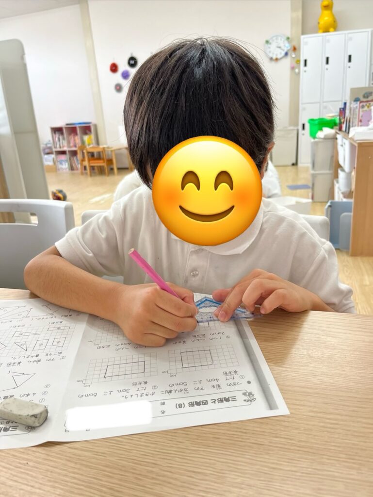 計算問題だけでなく、定規を使った図形の問題なども一生懸命取り組んでいます。