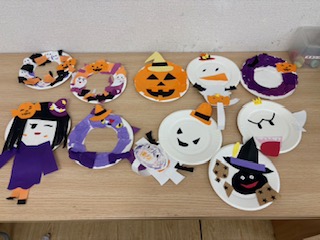 魔女やお化け、猫など一生懸命作ったオリジナルなハロウィンリースを完成することが出来ました👏