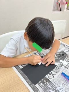 色々なアイディアや発想が素晴らしいです✨昨日に引き続きハロウィンに向けてスクラッチアートもしました👻