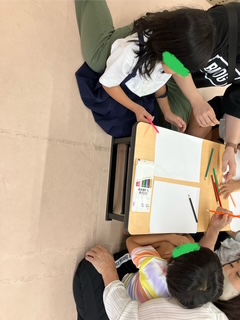 「ここ見えないから眉毛出してよ」「色もぬってみる」などとやり取りもそれぞれしながら楽しそうでした✨子どもたちのセンスは本当にすごいなと感心しました。