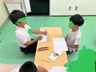 「まゆげはどうなっているかな」「表情は怒っているかな、笑っているかな」「髪の毛は長いかな、短いかな」「歯はどうかな」と普段相手の顔をじっとみる機会は少ないですが、よく観察して特徴をとらえながら丁寧に取り組んでいました😉