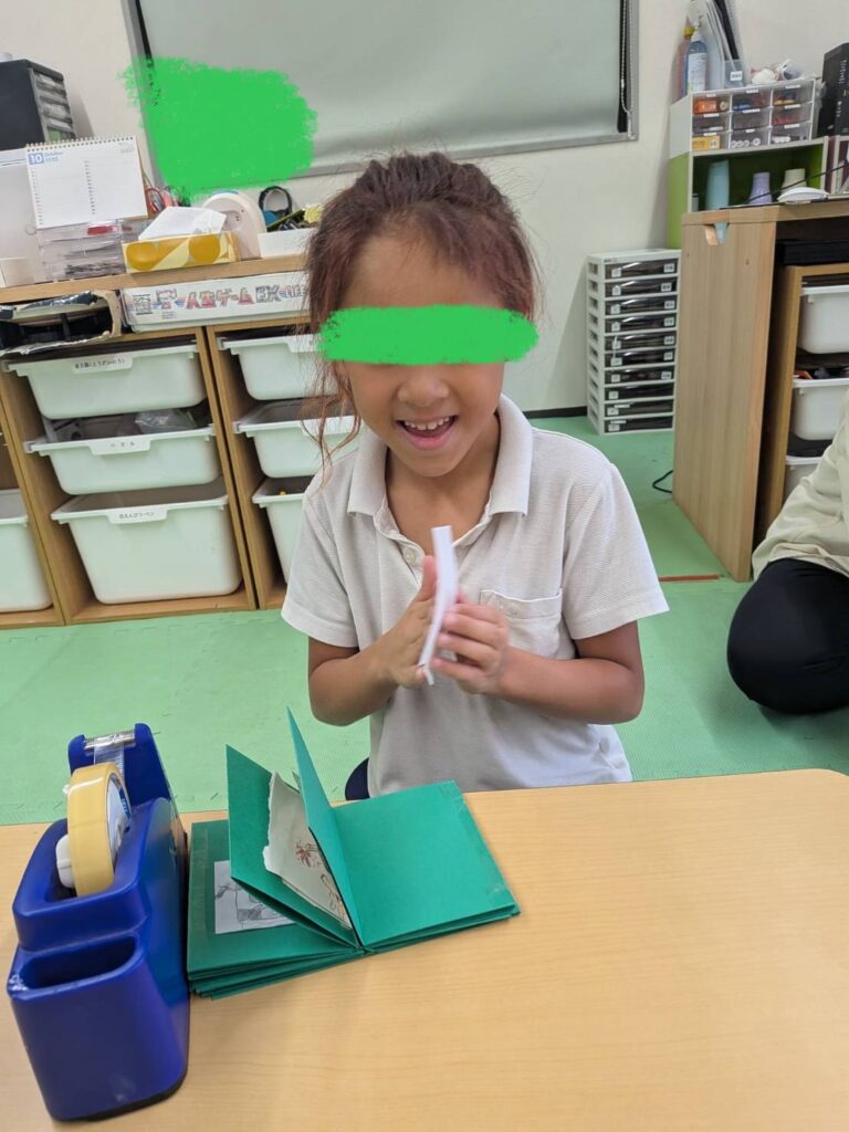 自由遊びでは絵を描いたり色塗りをしたり、男の子たちはシールブックを作っている子もいました😉