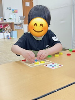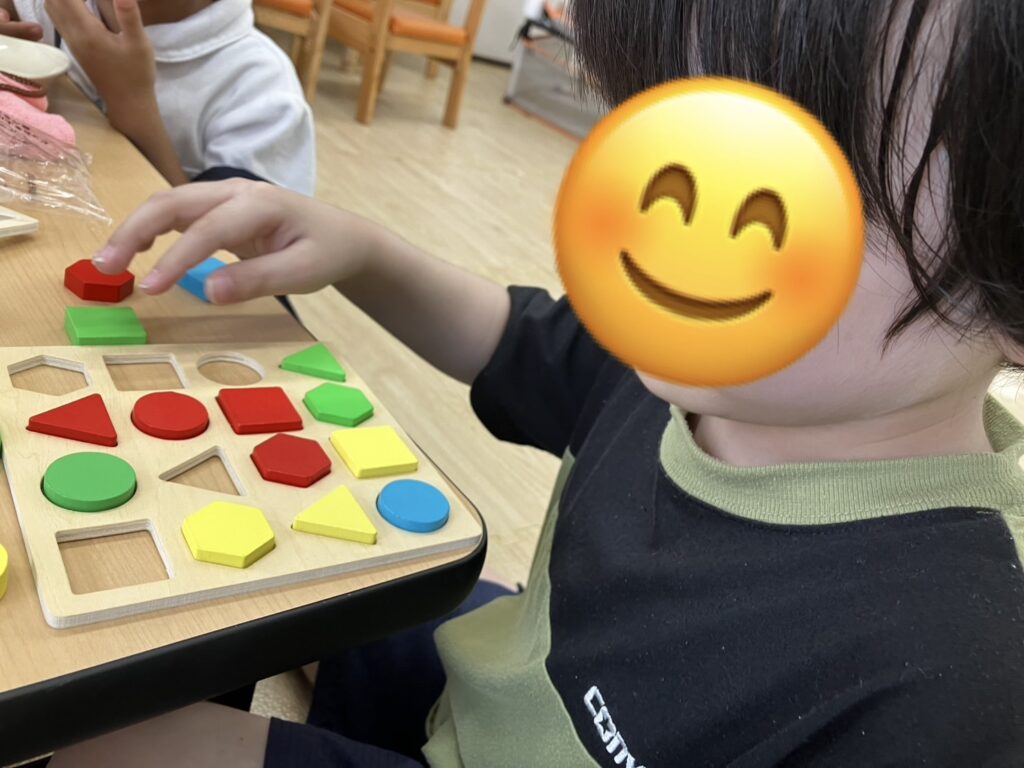 同じ色・形のパズルを探すのですが、最初は合っているのか確認しながら取り組んでいましたが、慣れてくると「これでしょ~😊」と楽しそうに取り組んでいましたよ💪