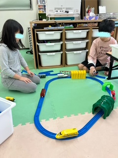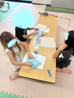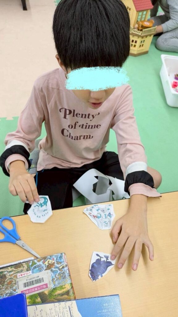 自由遊びの様子です。工作をしたり、シール帳とシールを自分で作ったり…