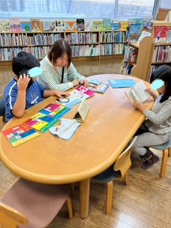 行った時間にちょうど絵本の読み聞かせが始まり、何人かのおともだちは読み聞かせを聞いて過ごしました💕「秋の食べもの」をテーマに、魚が出てくる本や、かぼちゃがでてくる本など、いろんな本を読み聞かせしていただきました( *´艸`)