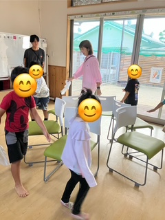 最後にみんなで椅子取りゲームがしたいと意見が出たので、みんなで椅子取りゲーム開始!