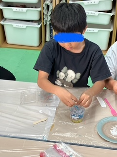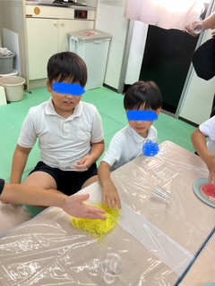 「つめたい」「ちょっとかたい」「さわりすぎて手がパサパササになったよ」「そうめんみたい」などと子どもたちの率直な思いや気づきがたくさん聞けました😉