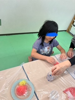今日の集団活動では「感触遊びを楽しもう‼」を行いました✻