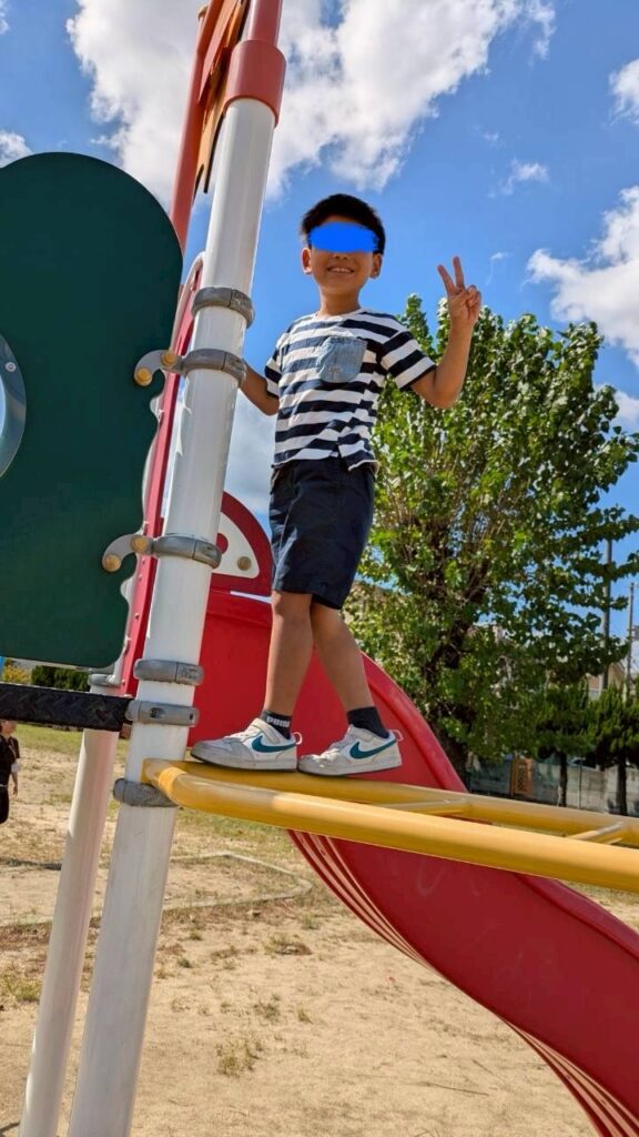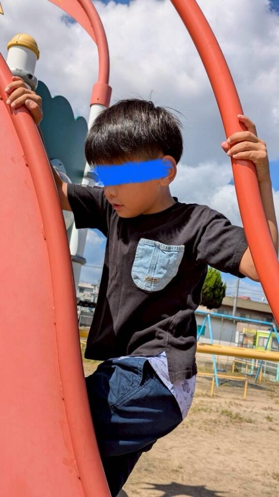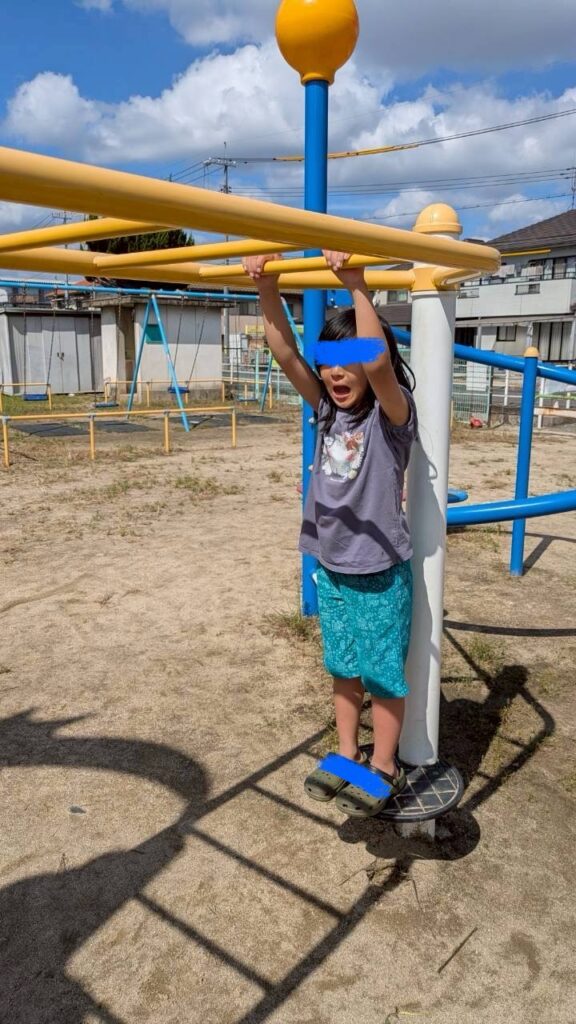 午前中は近くの公園に歩いていき、たくさん体を動かしました☀遊具で遊んだりおにごっこをしたり、バッタを捕まえたりと汗をかきながら楽しみました😊