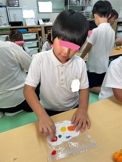 「色が混ざってきた!!」と興味津々に取り組んでいました😍
