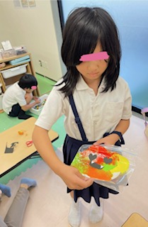 ジップロックに入れたら、指で絵具を伸ばしていきます。