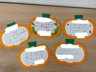 『サツマイモ掘り楽しかったよ💕』『サツマイモは、みなみんでモンブランと大学芋を作ったよ!』『サツマイモ美味しかったよ😋』など、たくさんのありがとうの気持ちを書いていましたよ🥰