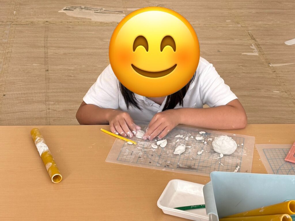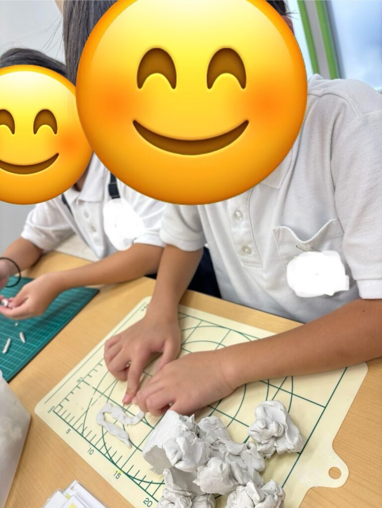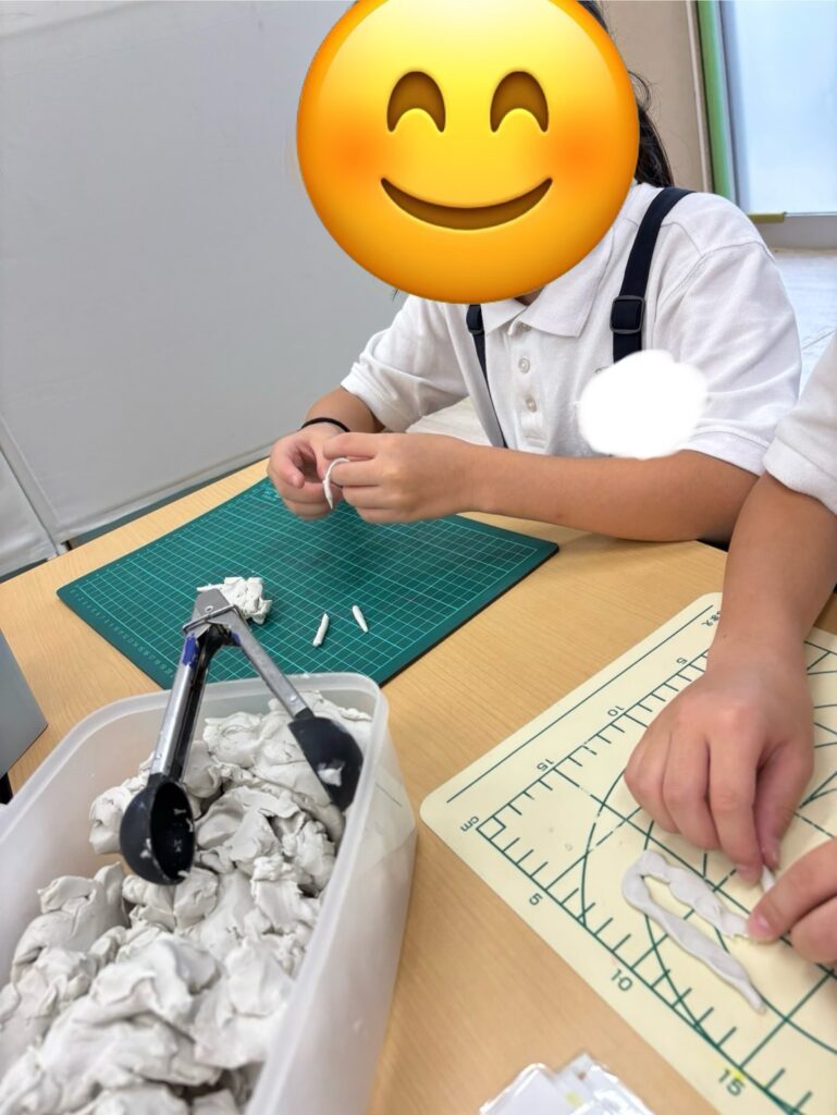 粘土を細長く伸ばした後は、止め・羽・払いをしっかり意識しながら完成させています😆