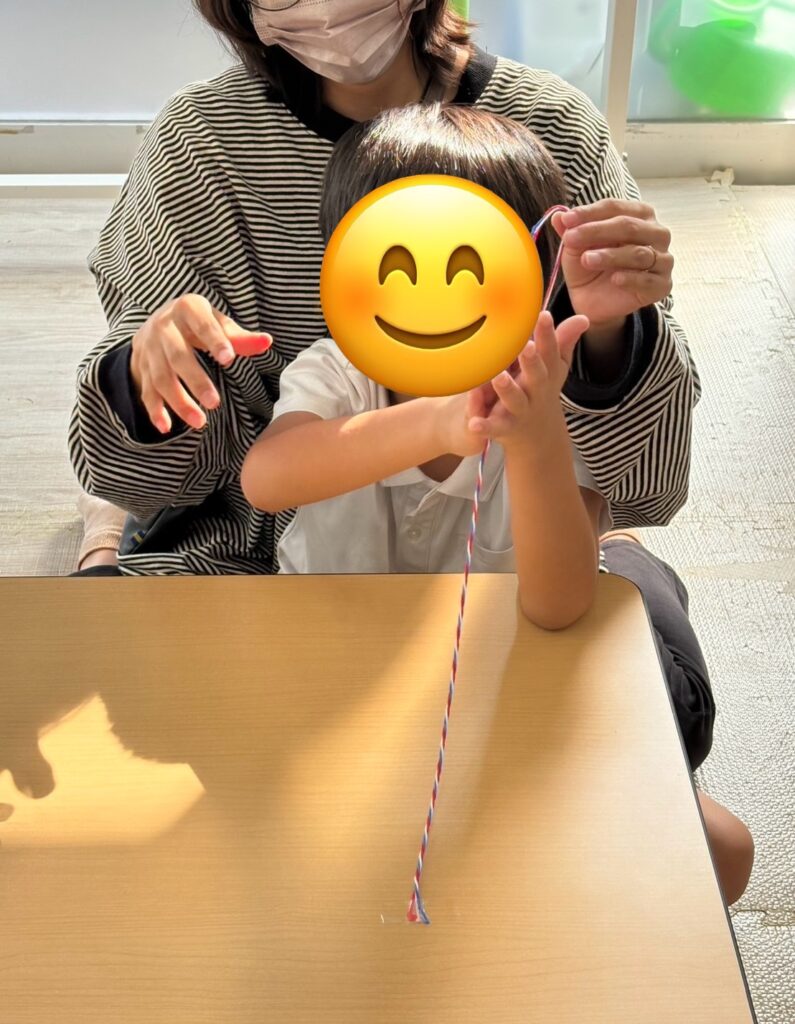 好きな色の糸を3つ選び、ねじっていきましたよ!
