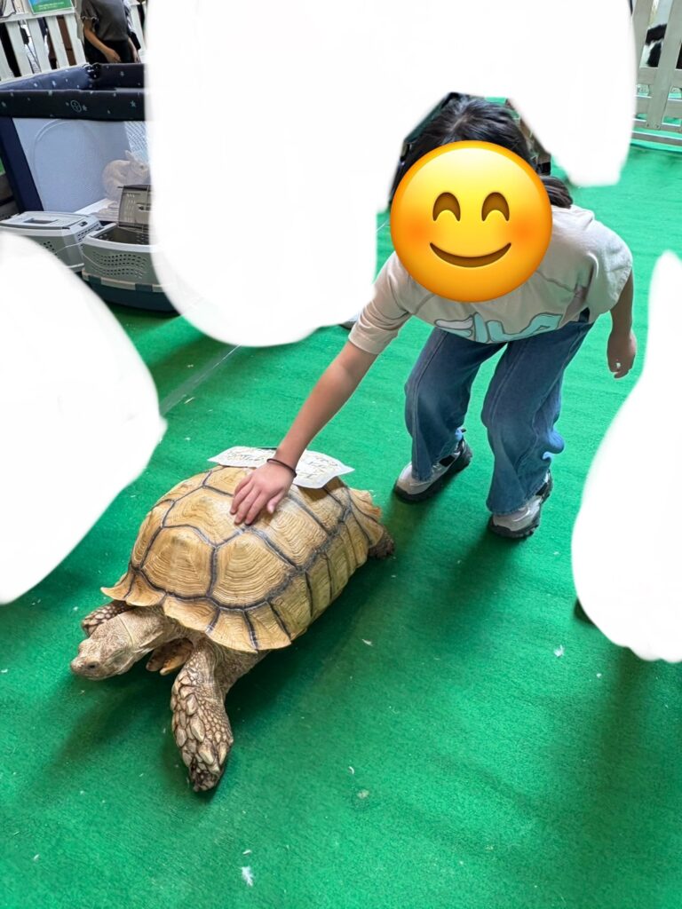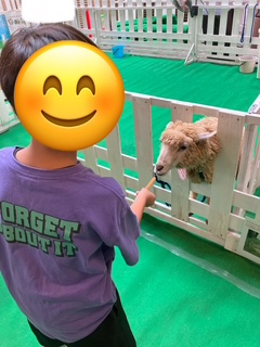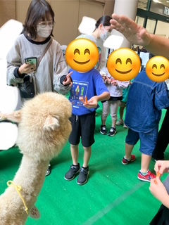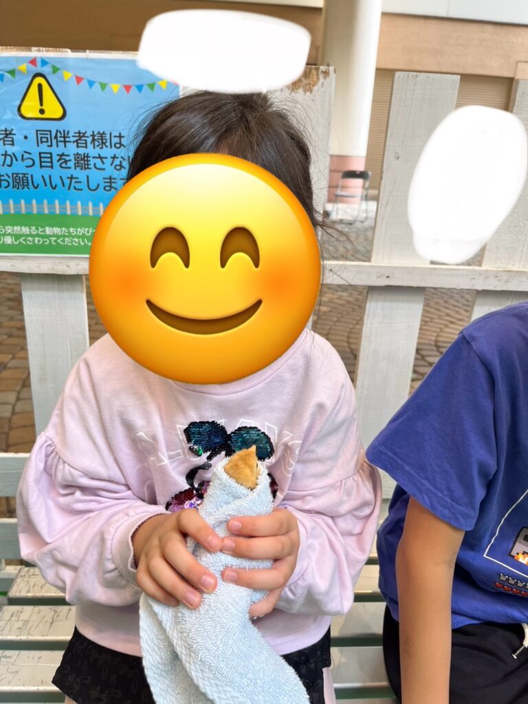 朝の会では、ゆめタウン&ポートプラザのイベントスペースで動物に触れ合えるイベントが開催されていたので、みんなで行きましたよ😆