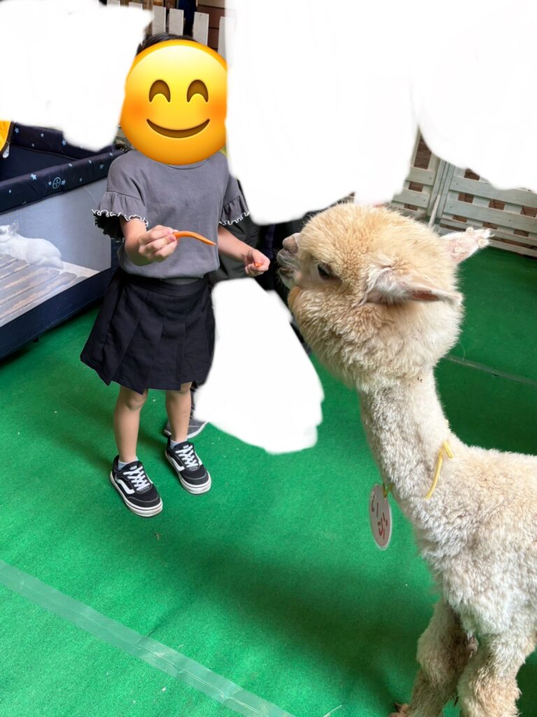 アルパカとヤギにニンジンの餌やりをしたり🥕
