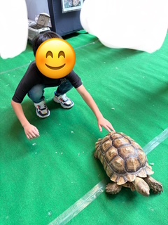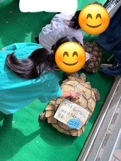亀のゴツゴツした甲羅を触って『意外とツルツルしてる!』と撫でてみたり🐢