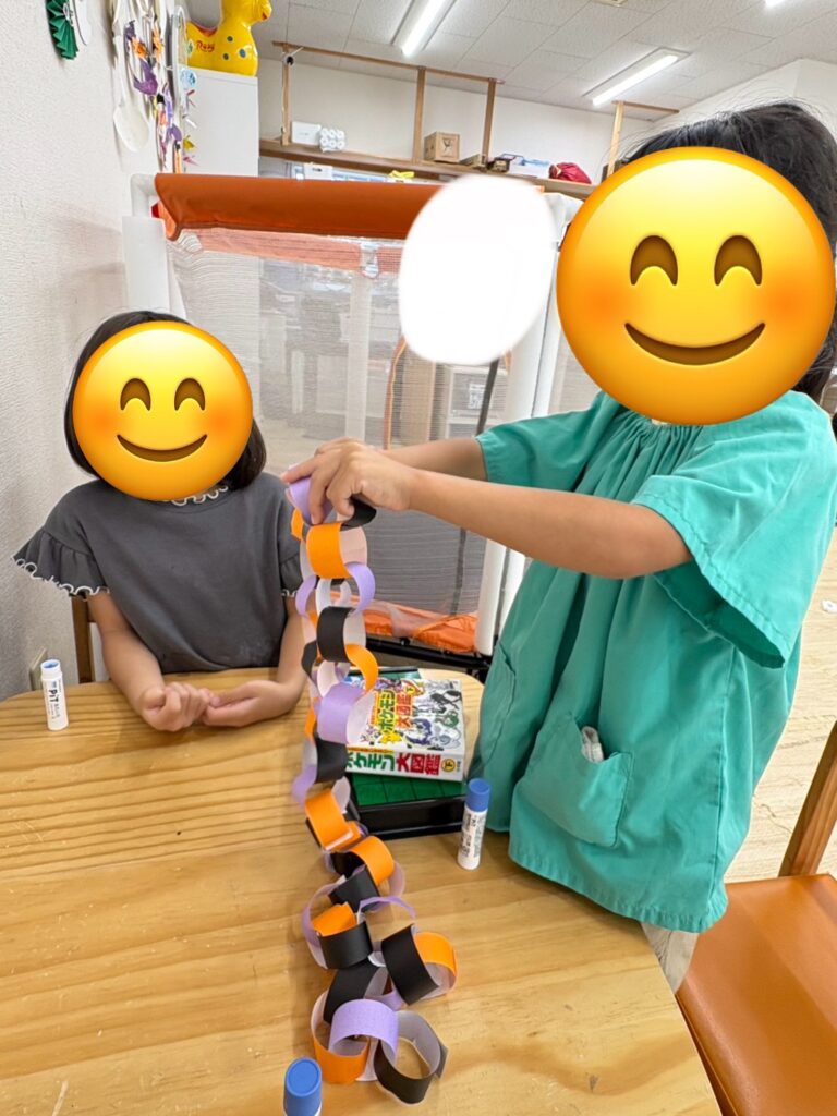 自由時間はプラレール、ペーパークラフト、トランポリン、ウノ、ハロウィーンの飾り作り、虫のお世話、ニューブロックなどをして過ごしました♪