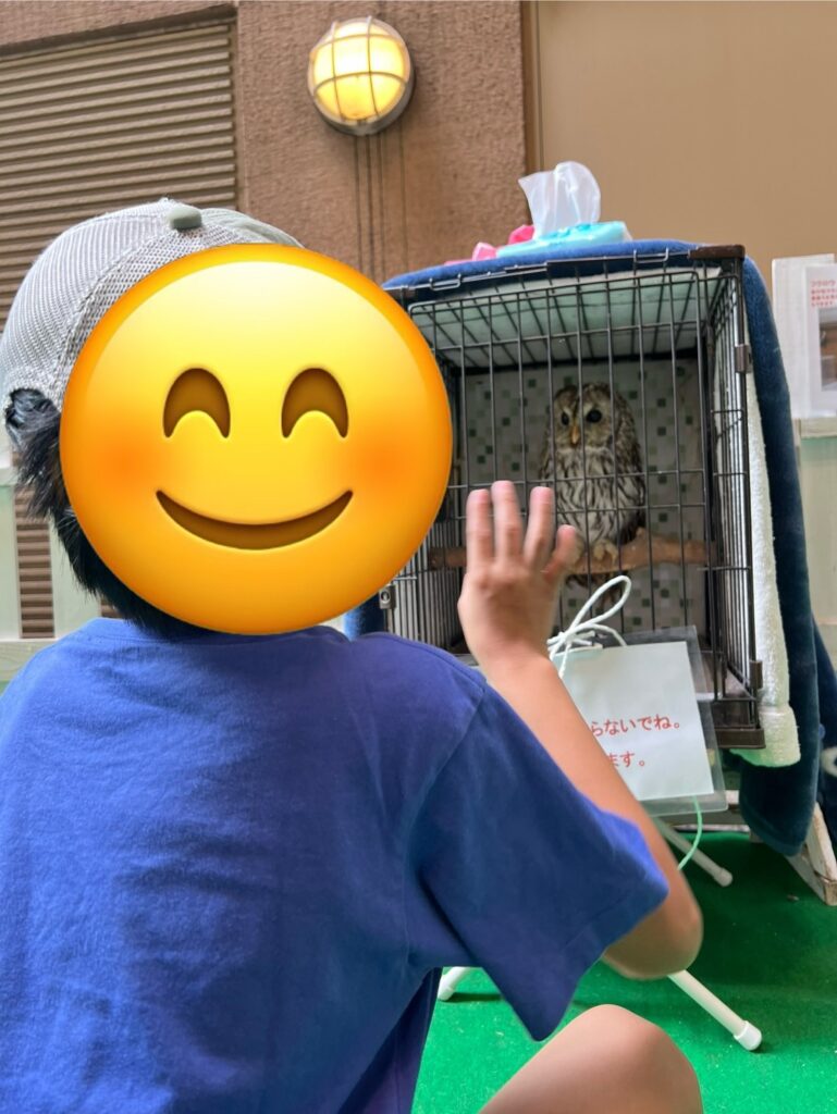 フクロウやアヒルといった珍しい動物を近くで見たり、犬のパグやハリネズミ、モルモットをそっと触ったりと思い思いに過ごしましたよ😄
