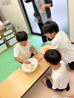 リズムに合わせて集中力、リズム感、手先の調整力、体を使って表現力する力が楽しく学ぶ事が出来ました!