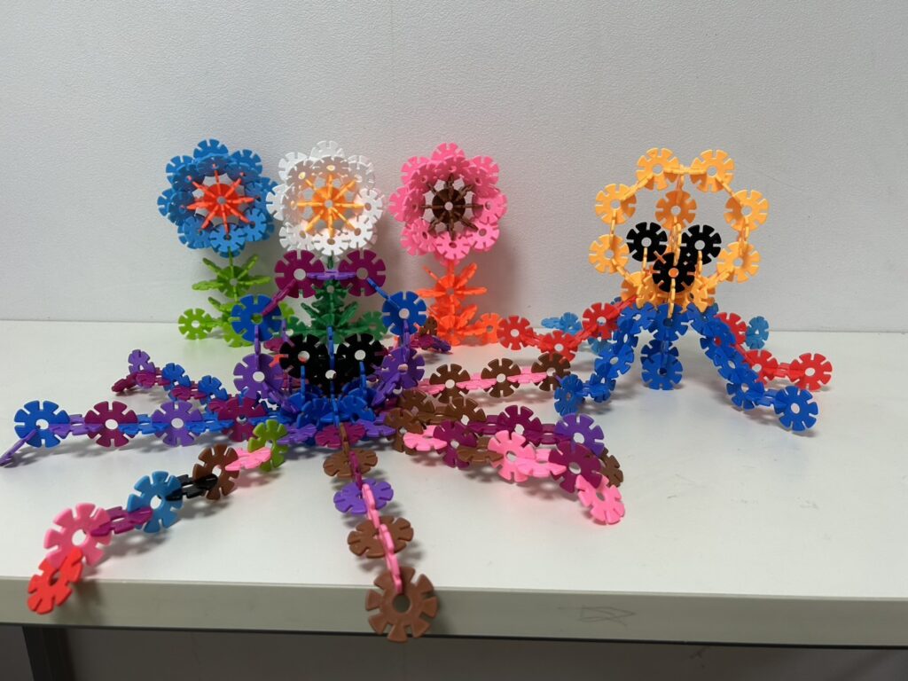 今日は座って行う活動で考え、図形たし算や左右見比べ、カラーコードパズル、パズルに分かれて活動しました!🧩