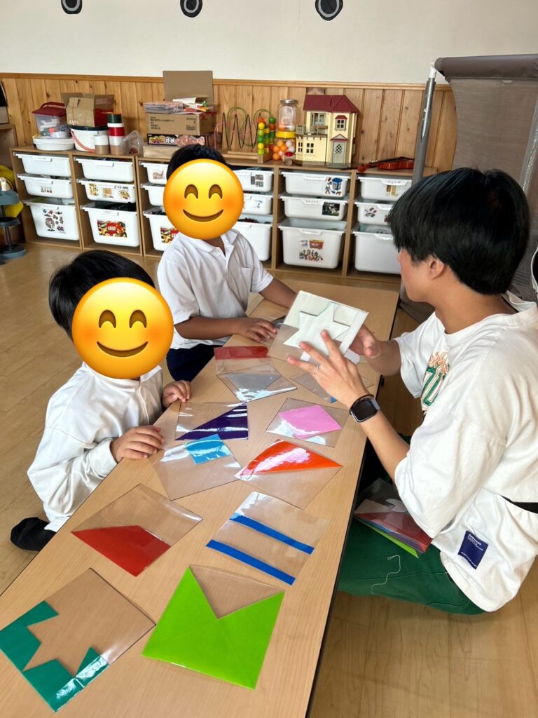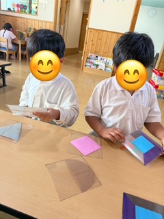 今日は集中して何かを作るという遊び方で、みんな週の中日で疲れているのかあまり体を動かさず遊んでいました!😊