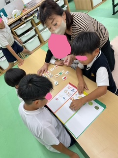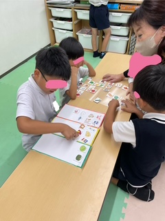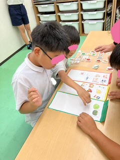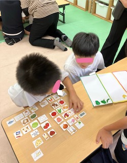 「食欲の秋!!」ということで、昨日の活動は3色食品群についての活動を行いました。「赤・黄・緑」の3色をバランスよく摂取することで、栄養バランスが整い、健康な体つくりに役立ちます。子どもたちも真剣に取り組んでいました。