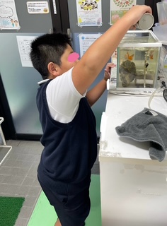 日直のお仕事!金魚のえさやりも忘れずにしてくれています💕