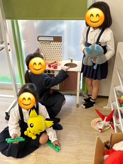 アイロンビーズで好きなポケモンを作ったり、大きなブロック、ぬいぐるみごっこで楽しんでいます😊