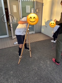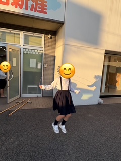 外に出て縄跳びや竹馬の練習です😊