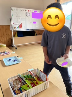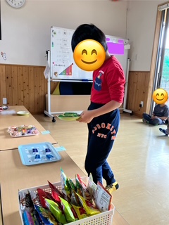 朝の会はお出かけの約束とおやつ選び🍫をしました。