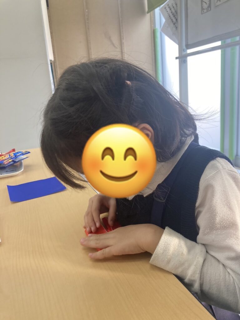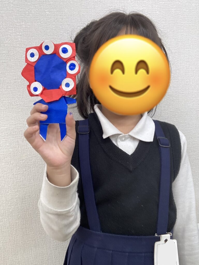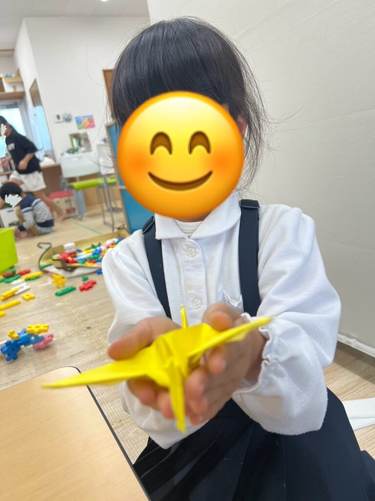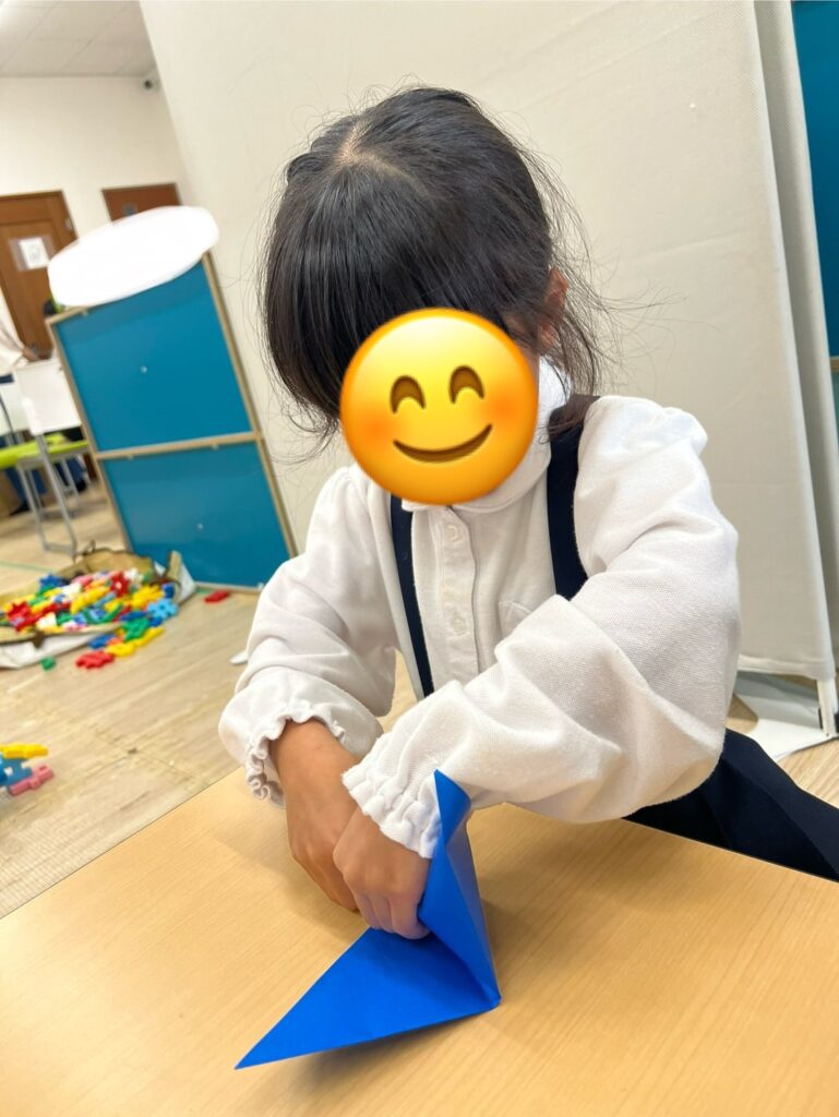 紙と紙を合わせたり、折ったり伸ばしたり、広げたり・・・。細やかな指先の力と動きの調整が必要になります。とても上手に丁寧に折り、かぼちゃや羽ばたく鶴、ミャクミャクを折っていましたよ✨