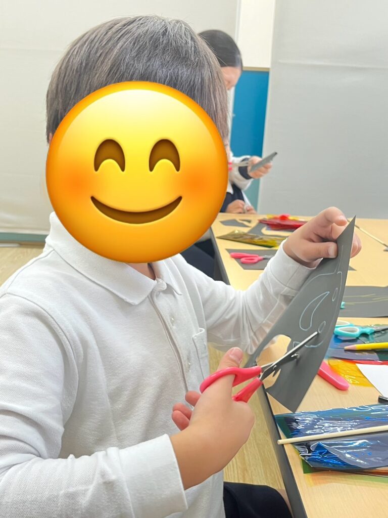 子どもたちは自分の好きなおばけ👻を書いて切っていきます。