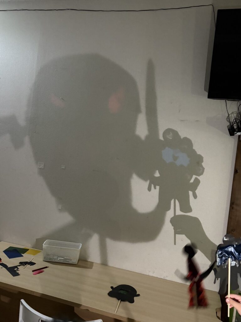 そして…室内を暗くし、いよいよ影絵遊びです✨