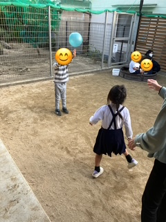 休憩に、土遊びをしたり、ボールの投げ合いを楽しんだり、大きなシャボン玉風船を作ってたのしみました(*^-^*)