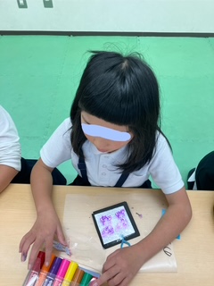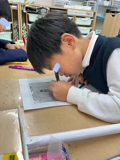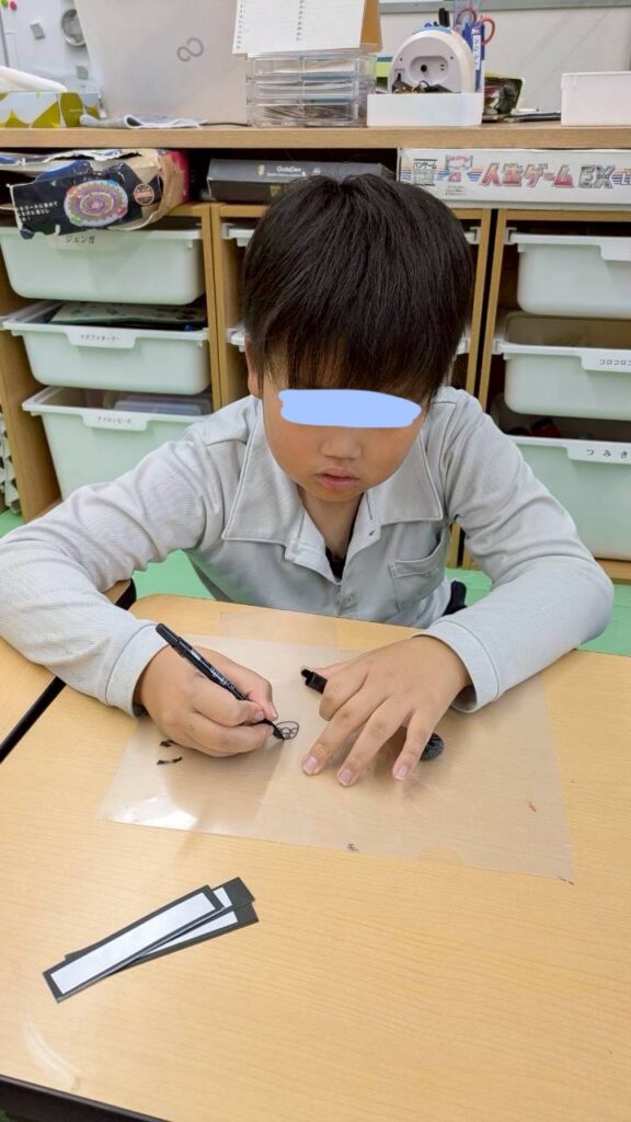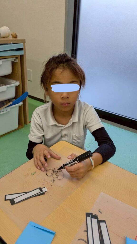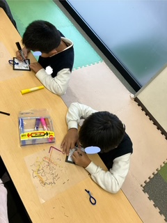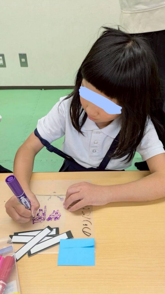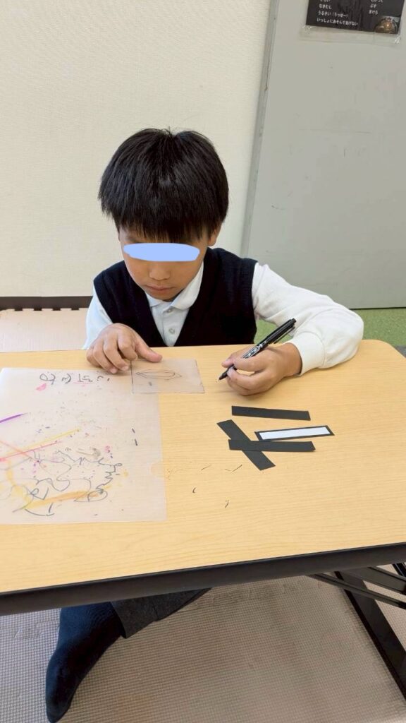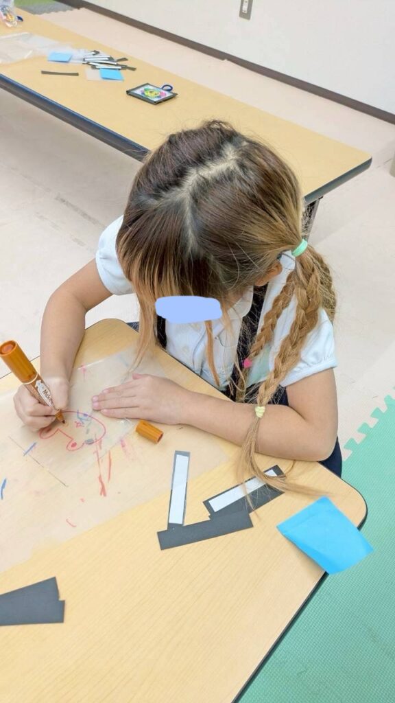まずは、自由に絵を描きます!!何を描こうか悩みながら描いていましたよ😚