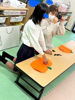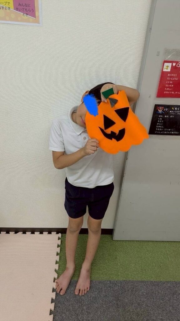集団活動は「ハロウィンかぼちゃ福笑い」をしました✨