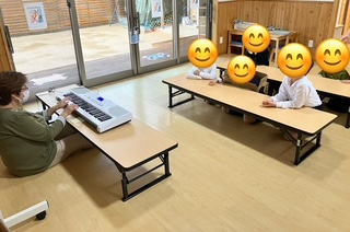 スタッフが弾くピアノの曲が、何の曲かな!?わかった人から、スタッフに耳打ちで答えていってもらいました。正解したら、みんなで合唱~(^^♪