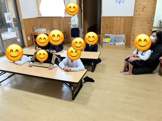 集団活動の様子です!まず、心を落ち着ける目的で、絵本の読み聞かせを~📖